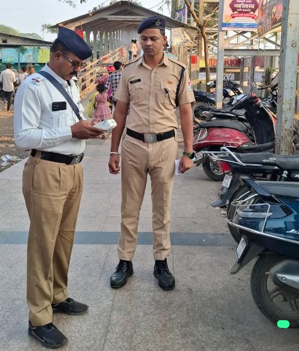 या अनुषंगाने दिनांक ८ डिसेंबर २०२५ रोजी रेल्वे सुरक्षा बलाचे जवान ( RPF ) श्री. हरेंद्र कुमार – कॉन्स्टेबल आणि स्थानिक पोलीस ठाणे सफाळे यांच्या अंतर्गत काम करणारे पालघर ट्राफिक पोलिस अंमलदार श्री.बाबासाहेब यमगार ASI यांनी संयुक्तपणे पहाणी करीत, सफाळे रेल्वे प्लॅटफॉर्मवर जाण्या येण्यासाठी असलेल्या रस्त्यांवर व नो पार्किंग क्षेत्रात पार्किंग केलेल्या खालील प्रमाणे नंबर प्लेट असलेल्या एकुण ०७ गाड्यांवर ईचलना द्वारे दंडात्मक कारवाई केली आहे. 1) MH 48-CU – 8016 – Rs. 500 /- 2)MH.04. EG.- 3089 ₹ 500 -/ 3) MH- 48 BB,- 8524 – ₹ 500 -/, 4) MH. 48. -.6460- ₹ 500 -/ 5) – MH.048- X- 91670- ₹ 500 – /. 6 ) M H -04 -CF – 9753 ₹ 500, 7) MH -48-CF 5681- Rs 500/-