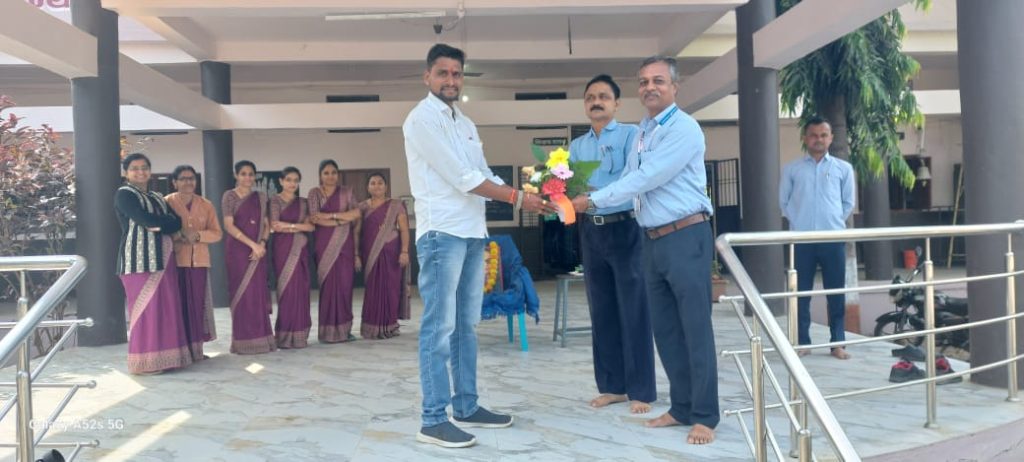 सत्कार करतांना वरिष्ठ शिक्षक श्री.जे.बी.फेगडे सर शिक्षक शिक्षिका व शिक्षकेतर कर्मचारी वृंद. मातीचे प्रदुषण रोखन्यासाठी सेंद्रीय खताचा वापर करावा – संतोष भाऊ पाटील सर यांनी व्यक्त केले. तर संकलन शरिफ तडवी सर यांनी केले. कार्य क्रमाचे सुत्रसंचालन वाय.बी.नेरकर यांनी केले.