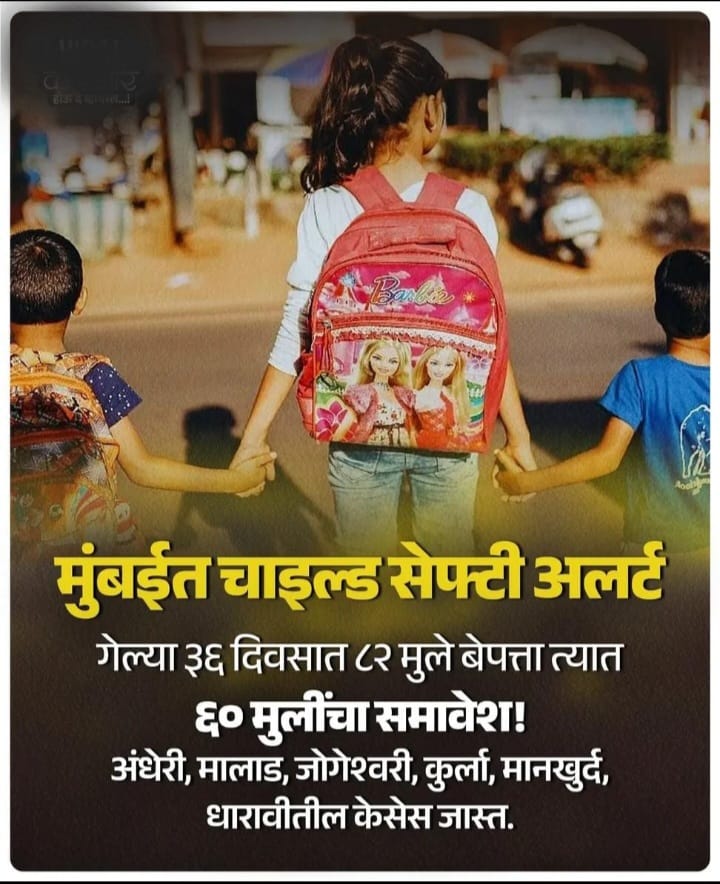 देशाची आर्थिक राजधानी असलेल्या मुंबईत 18 वर्षांपर्यंतच्या बेपत्ता किशोरवयीन मुलांचे प्रमाण सातत्याने वाढत आहे. मुंबई पोलिसांकडून मिळालेल्या माहितीनुसार, जून ते डिसेंबरच्या पहिल्या आठवड्यापर्यंत मुंबईतून 370 हून अधिक किशोरवयीन मुले बेपत्ता झाली आहेत. त्यापैकी 268 मुली आहेत. एकूण दरमहा सरासरी 60 मुले बेपत्ता होतात. अल्पवयीन मुलींच्या बेपत्ता होण्यामुळे त्यांच्या सुरक्षिततेबाबत गंभीर चिंता निर्माण झाली आहे.