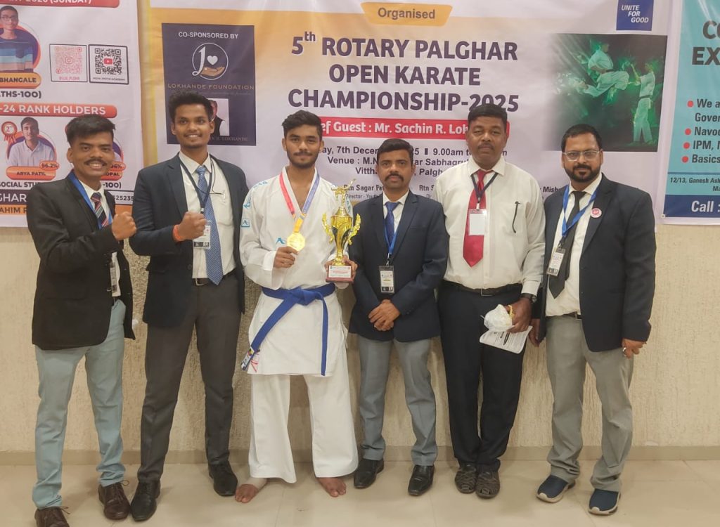 पालघर शहरात रोटरी क्लब ऑफ पालघर यांच्या वतीने आयोजित करण्यात आलेल्या ROTARY CHAMPION CUP – 5th Rotary Palghar Open Karate Championship या भव्य कराटे स्पर्धेत वेंगुर्लेकर कराटे क्लासच्या विद्यार्थ्यांनी घवघवीत यश संपादन करत आपली छाप पाडली आहे.
