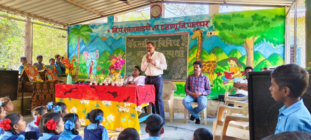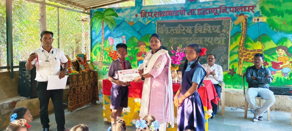 बालमनातील सुप्त कलागुणांना हक्काचे व्यासपीठ मिळवून देण्याच्या उद्देशाने, दापचरी केंद्रीय विविध गुणदर्शन स्पर्धा नुकत्याच जि. प. घाडणे येथे अत्यंत उत्साहात पार पडल्या. कार्यक्रमासाठी अध्यक्ष म्हणून केंद्रप्रमुख मा. सुरेश चौधरी सर तसेच प्रमुख पाहुणे म्हणून पालघर जिल्हा परिषदेचे माजी सदस्य मा. करबट साहेब आणि घाडणे ग्रामपंचायतीच्या सरपंच करबट मॅडम, मुख्याध्यापक घरत सर यांची विशेष उपस्थिती होती.या सोहळ्याने दापचरी केंद्रातील विद्यार्थ्यांच्या कलाविष्काराची एक नवी उंची गाठली.कार्यक्रमाची सुरुवात विद्यादेवता सरस्वती आणि स्त्री शिक्षणाच्या जननी क्रांतीज्योती सावित्रीबाई फुले यांच्या प्रतिमा पूजनाने व दीपप्रज्वलन करून स्पर्धेचे उद्घाटन करण्यात आले. मान्यवरांनी आपल्या भाषणातून विद्यार्थ्यांच्या कौशल्यांचे कौतुक करत त्यांना पुढील वाटचालीस प्रोत्साहन दिले.स्पर्धेचे नि:पक्षपाती परीक्षण करण्यासाठी परीक्षक म्हणून डॉ. दत्तात्रय शिंदे सर (शांतिकुमार आदिवासी विद्यामंदिर, वरखंडा), प्राचार्य तुवर सर (विनायकराव पाटील कॉलेज),श्री.वरठा सर(जि. प. शाळा, तोरणीपाडा) या तज्ज्ञांनी चोख जबाबदारी पार पाडली.दुपारच्या सत्रात डहाणू पंचायत समितीच्या शिक्षण विस्तार अधिकारी सौ. ममता पटेल मॅडम यांनी स्पर्धेला भेट दिली. “स्पर्धेत जय-पराजयापेक्षा सहभाग महत्त्वाचा असून, अशा व्यासपीठामुळेच भविष्यातील कलाकार घडतात,” असे प्रेरणादायी विचार त्यांनी यावेळी व्यक्त केले.दिवसभर चाललेल्या विविध कलाप्रकारांच्या सादरीकरणानंतर विजेत्या विद्यार्थ्यांचा मान्यवरांच्या हस्ते गौरव करण्यात आला. बक्षीस स्वीकारतांना विद्यार्थ्यांच्या चेहऱ्यावरचा आनंद ओसंडून वाहत होता.परीक्षक डॉ. शिंदे यांनी यशस्वी विद्यार्थ्यांचे अभिनंदन केले. तसेच स्पर्धेत जाणवलेल्या उणीवा कमतरता भरून काढत पुढील स्पर्धेसाठी अधिक जोमाने तयारी करा असा संदेश दिला. आयोजक जि. प. शाळा घाडणे व शिवपाडा यांनी कार्यक्रम यशस्वी करण्यासाठी मेहनत घेतली. संपूर्ण कार्यक्रमाचे सूत्रसंचालन श्री. महेश जनाथे व दिलीप धांगडा यांनी केले. तर आभार प्रदर्शन गोंधळी सर यांनी व्यक्त केले.