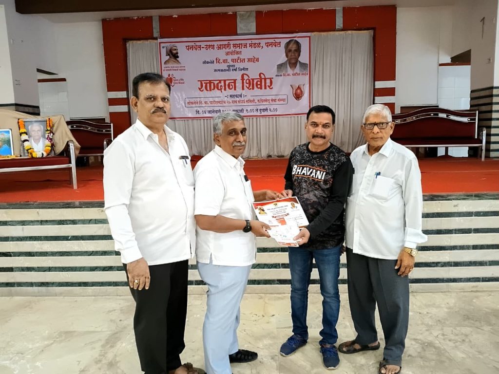 लोकनेते दि.बा. पाटील साहेब यांच्या जन्मशताब्दी निमित्त पनवेल ऊरण आगरी समाज मंडळातर्फे रक्तदान शिबिराचे रविवार दिनांक ०४ जानेवारी रोजी मंडळाचे महात्मा फुले सभागृहात करण्यात आले होते (पनवेल). ८७ व्यक्तींनी रक्तदान करून लोकनेते दि.बा. पाटीलसाहेबांना आदरांजली वाहिली. शिबिराचे उद्घाटन सुप्रसिद्ध शल्य चिकित्सक डॉ. गिरीश गुणे यांच्या हस्ते झाले. शिबिरास मा. खासदार रामशेठ ठाकूर साहेब, डॉ. नितीन म्हात्रे, माजी विरोधी पक्षनेते प्रीतम म्हात्रे, नगरसेविका दर्शना भोईर व अनेक मान्यवरांनी भेट देऊन रक्तदात्यांचा व कार्यकर्त्यांचा उत्साह वाढवला.मुंबई पत्रकार : श्री. सतिश पाटील यांनी रक्त दान केले सहा वेळा रक्तदान केले. तसेच सर्व रकतदात्याना प्रमाण पत्र व दि.बा. पाटील यांच्या नावाने भेटवस्तू थर्मास बॉटल आगरी समाज मंडळाच्या माध्यमातून देण्यात आली.शिबिराचे आयोजनासाठी पनवेल उरण आगरी समाज मंडळाचे अध्यक्ष अतुल दि.बा. पाटील, सचिव बी.पी. म्हात्रे, कोषाध्यक्ष विजय गायकर यांनी खूप मेहनत घेतली.शिबीर आगरी समाज उरण -पनवेल मंडळ व रूधिरसेतु सेवा संस्था पनवेल यांच्या विद्यमाने संपन्न झाला. प्रत्येकाने रक्तदान करून मानवता धर्माचे सार्थक करावे.तुमचे एक रक्तदान अनेकांना जीवनदान देऊ शकते.