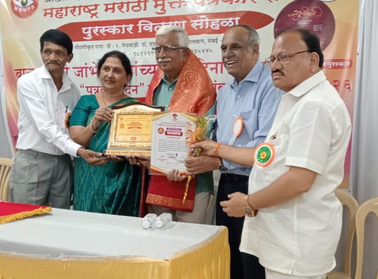 मुंबई : महाराष्ट्र मराठी मुक्त पत्रकार संघ मुंबई यांच्या २५ व्या रौप्य महोत्सवी व बाळशास्त्री जांभेकर यांच्या जन्म दिनाचे औचित्य साधून दि. ६ जाने. २०२६ पत्रकार दिना दिवशी महाराष्ट्रातील २५ ज्येष्ठ प्रत्रकारांचा मुंबईत बी आर दंडवते सभागृह, ना. म. जोशी मार्ग, येथे सन्मान करण्यात आला.