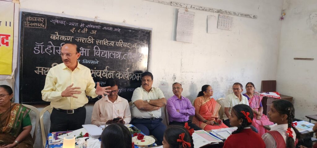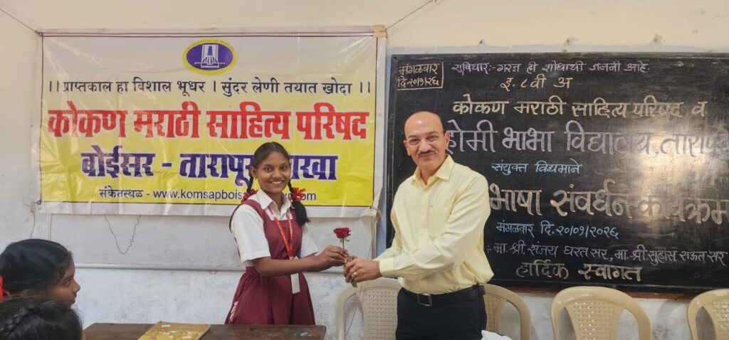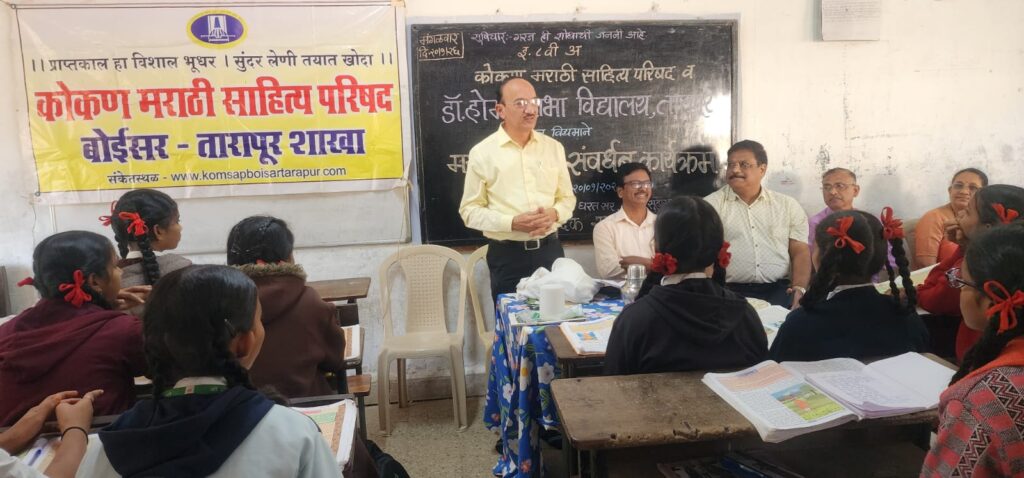 बोईसर : (प्रतिनिधी)कोकण मराठी साहित्य परिषद, बोईसर–तारापूर शाखेच्या वतीने आयोजित मराठी भाषा संवर्धन पंधरवडा कार्यक्रम डॉ. होमी भाभा विद्यालय, तारापूर टी.ए.पी.एस. येथे उत्साहात पार पडला.