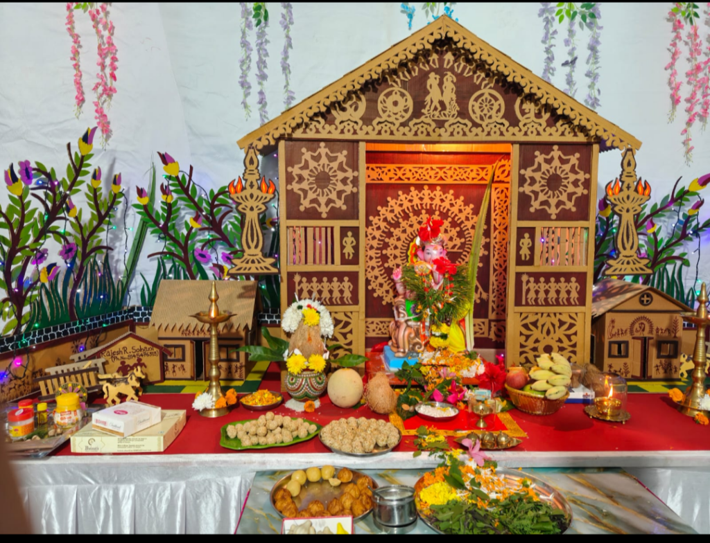 विशेष म्हणजे, पारंपरिक वारली पेंटिंग न करता पुढ्यावर कोरल करून माघी गणपतीची सजावट तयार करण्याची ही संकल्पना असून, अशी कलाकारी पुढ्यावर प्रथमच करण्यात आल्याचे सांगितले जाते. या नवकल्पनात्मक कलेमुळे शाळेच्या परिसरात उत्साही वातावरण निर्माण झाले असून, विद्यार्थी व शिक्षकांनी या कलाकृतीचे मनापासून कौतुक केले आहे.