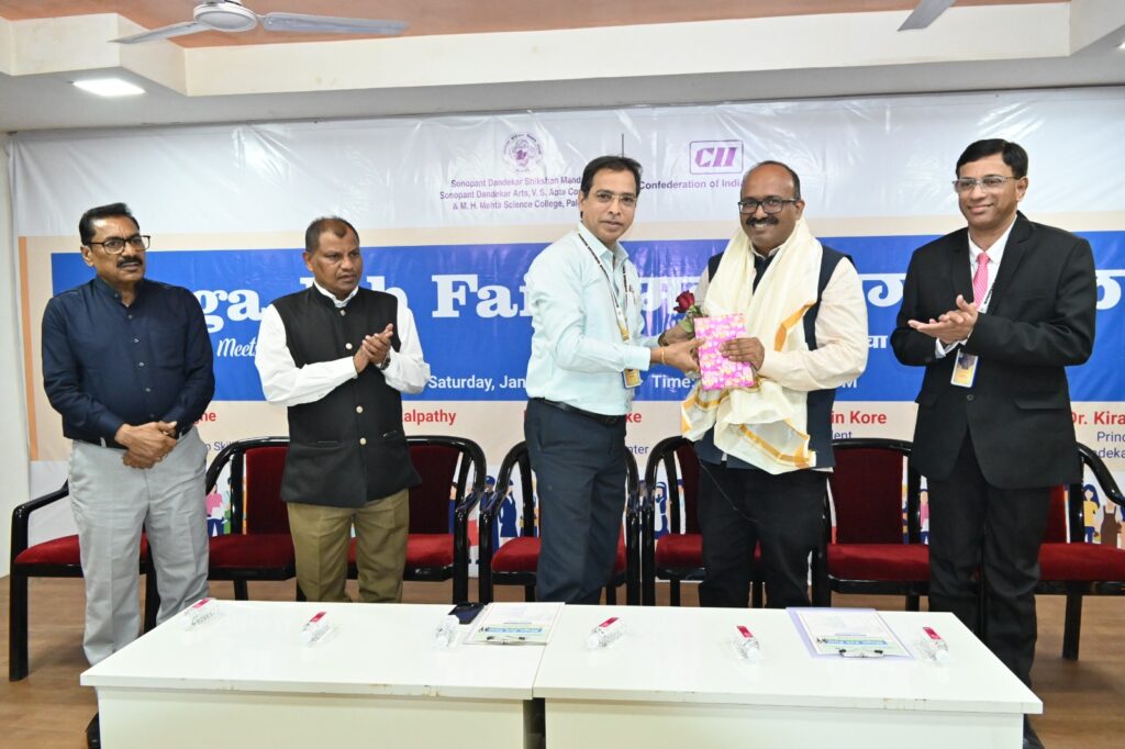 कौशल्य प्राप्त केल्यास तरुणांना रोजगार मिळविणे अवघड नाही, असे प्रतिपादन कॉन्फेडरेशन ऑफ इंडियन इंडस्ट्रीज (CII) कांदिवली येथील सेंटरचे प्रमुख श्री. दयाळ कांगणे यांनी केले. सोनोपंत दांडेकर महाविद्यालय व कॉन्फेडरेशन ऑफ इंडियन इंडस्ट्रीज यांच्या संयुक्त विद्यमाने दिनांक ३१ जानेवारी २०२६ रोजी महारोजगार मेळाव्याचे आयोजन करण्यात आले होते.