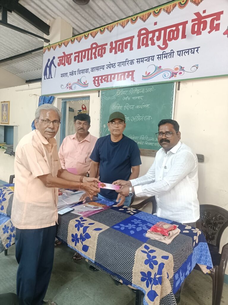 पालघर जेष्ठ नागरिक समन्वय समिती चे वतीने, सामाजिक कार्यकर्ते, डॉ. अॕड. निलेश राऊत यांचा सन्मान