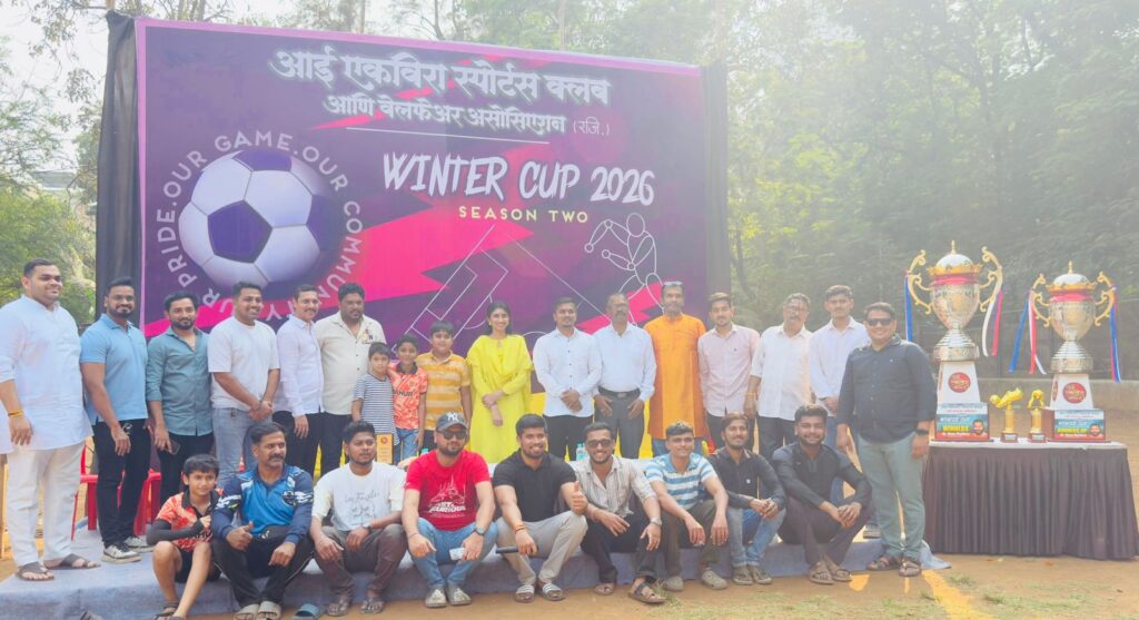 नाहूर (मुंबई) : नाहूरगावात आई एकविरा स्पोर्ट्स क्लब आणि वेलफेयर असोसिएशन यांच्या संयुक्त विद्यमाने आयोजित करण्यात आलेल्या ‘विंटर कप २०२६ – सिझन २’ फुटबॉल स्पर्धेला क्रीडाप्रेमींचा उत्स्फूर्त प्रतिसाद लाभला. स्पर्धेच्या निमित्ताने परिसरात खेळाडू आणि प्रेक्षकांमध्ये उत्साहाचे वातावरण निर्माण झाले होते.