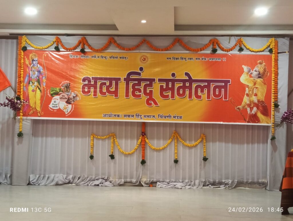 शेकडो नागरिकांच्या उपस्थितीत पार पडलेल्या या महासंमेलनाची सांगता “सनातन हिंदू धर्म की जय” या घोषणांनी उत्साहपूर्ण वातावरणात करण्यात आली.