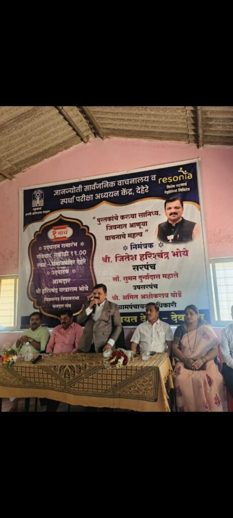 देहेरे येथे ‘ज्ञानज्योती’ सार्वजनिक वाचनालय व स्पर्धा परीक्षा अध्ययन केंद्राचे उद्घाटन
