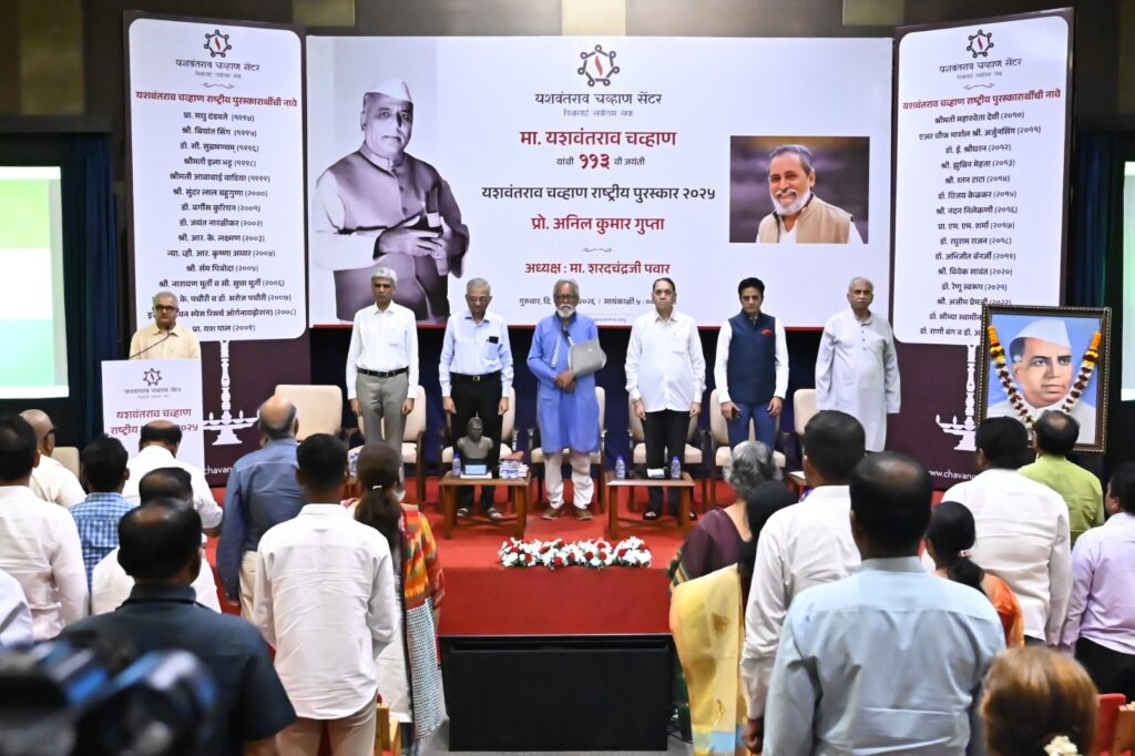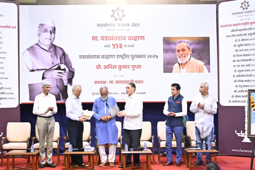मुंबई गुरुदत्त वाकदेकर) : समाजाभिमुख नवोपक्रम आणि ग्रासरूट इनोव्हेशनसाठी ओळखले जाणारे प्रो. डॉ. अनिल कुमार गुप्ता यांना २०२५ साठी यशवंतराव चव्हाण राष्ट्रीय पुरस्कार प्रदान करण्यात आला. चव्हाण सेंटर दरवर्षी हा पुरस्कार राष्ट्रीय एकात्मता, लोकशाही मूल्ये आणि सामाजिक-आर्थिक क्षेत्रातील उत्कृष्ट कार्यासाठी देते. प्रो. गुप्ता हे हनी बी नेटवर्कचे संस्थापक आहेत.