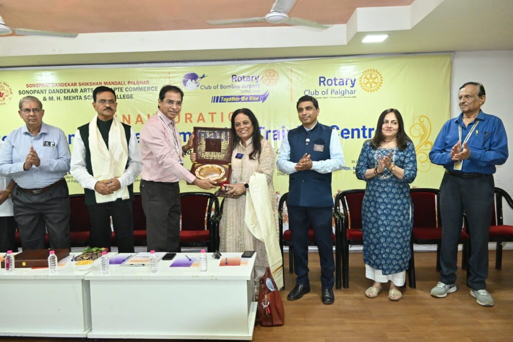 शिक्षणासाठी धडपडणाऱ्या विद्यार्थ्यांना संधी देणे हे सामाजिक संस्थांचे आद्य कर्तव्य आहे, रोटरी क्लब ऑफ बॉम्बे एअरपोर्ट आत्तापर्यंत अनेक शैक्षणिक उपक्रम राबवले आहेत. स्पर्धा परीक्षांचे प्रशिक्षण केंद्र हे एक रोपटं आहे. त्याचं जतन संवर्धन सोनोपंत दांडेकर संस्थेने करावं असे प्रतिपादन प्रमुख अतिथी बॉम्बे एअरपोर्टच्या अध्यक्षा प्रज्ञा मेहता यांनी केले. पालघर परिसरातील विद्यार्थ्यांनी स्पर्धात्मक परीक्षांमध्ये सहभाग घेऊन यश संपादन करावे याकरता दांडेकर महाविद्यालयात स्पर्धा परीक्षा प्रशिक्षण केंद्राचे उद्घाटन झाले. रोटरी क्लब ऑफ बॉम्बे एअरपोर्ट आणि रोटरी क्लब पालघर यांच्या पुढाकाराने जवळपास सत्तर लाख रकमेचे प्रशिक्षण केंद्र उभारण्यात आले. केंद्रामार्फत विविध क्षेत्राशी संबंधित असलेल्या स्पर्धा परीक्षांची माहिती आणि त्यांचा अभ्यास कसा करावा याचे प्रशिक्षण दिले जाईल.