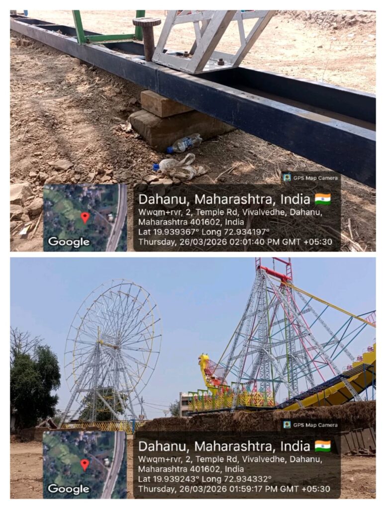 पालघर जिल्ह्यातील लाखो भाविकांचे श्रद्धास्थान असलेल्या प्रसिद्ध महालक्ष्मी देवी यात्रेला २ एप्रिलपासून सुरुवात होत असून, यात्रेच्या पार्श्वभूमीवर प्रशासनाने सुरक्षेचे कडक निर्देश दिले असतानाही यात्रास्थळी आकाश पाळणे, मौत का कुवा, टोरा-टोरा, ड्रॅगन, ब्रेक डान्स यांसारख्या धोकादायक मनोरंजनाच्या खेळांची तकलादू पद्धतीने उभारणी सुरू असल्याचा धक्कादायक प्रकार समोर आला आहे. त्यामुळे भाविकांच्या जीवाशी थेट खेळ सुरू असल्याची तीव्र भावना व्यक्त होत आहे.