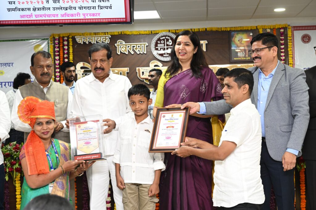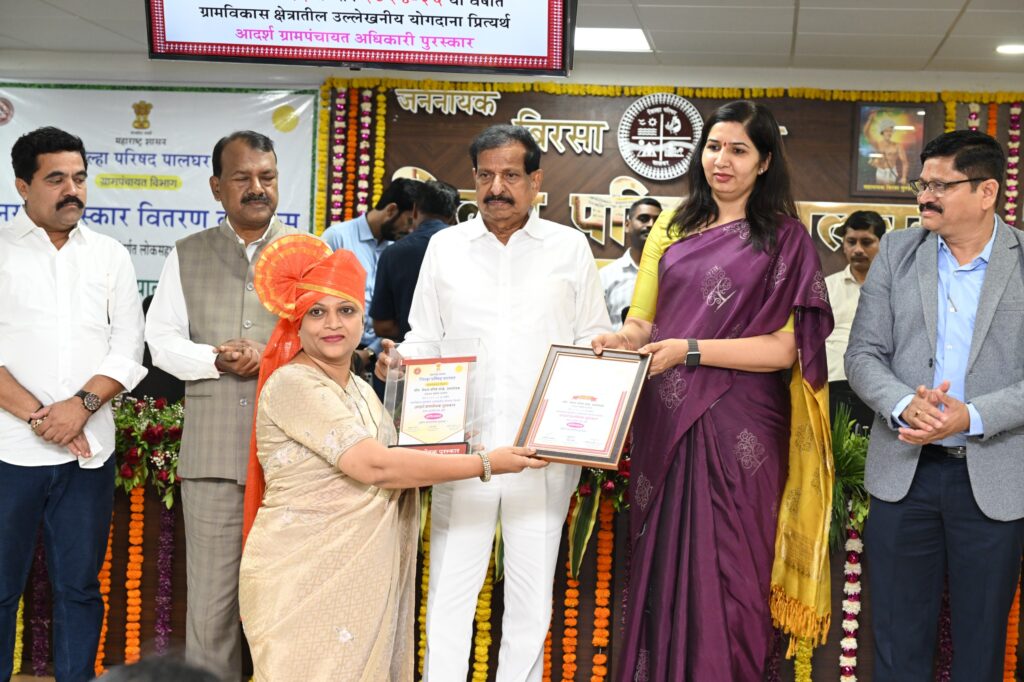 पालघर जिल्ह्यातील ग्रामविकास आणि जलसंधारण चळवळीला नवसंजीवनी देणारा एक प्रेरणादायी सोहळा आज जिल्हा परिषदेत पार पडला. पालकमंत्री तथा राज्याचे वनमंत्री गणेश नाईक यांच्या हस्ते आदर्श ग्रामसेवक, ग्रामपंचायत अधिकारी आणि वनराई पुरस्कारांचे वितरण करण्यात आले. जननायक बिरसा मुंडा सभागृहात झालेल्या या कार्यक्रमाला प्रशासन आणि ग्रामपातळीवरील कार्यकर्त्यांचा उत्स्फूर्त प्रतिसाद लाभला.