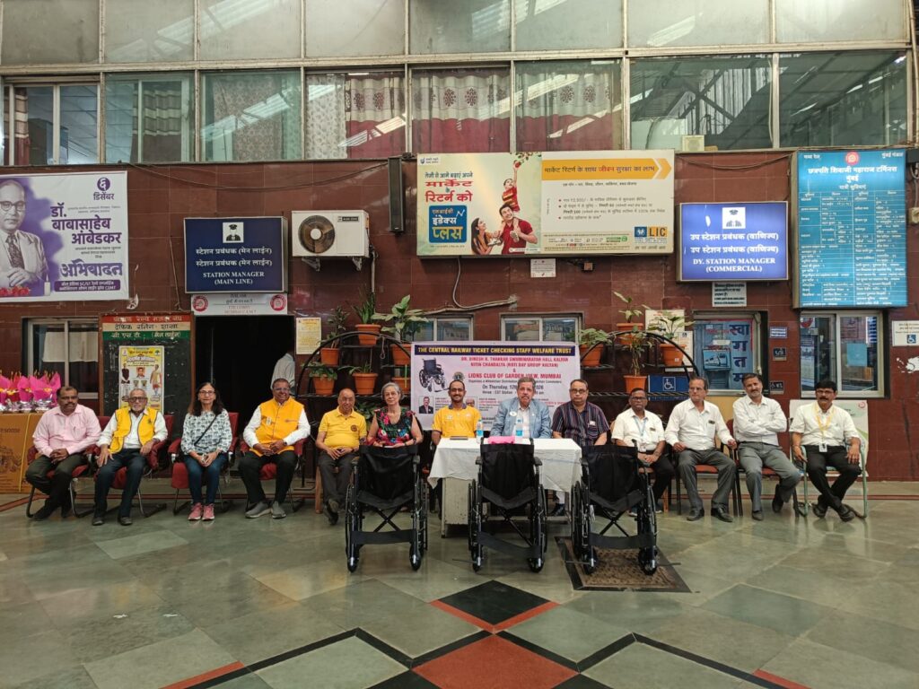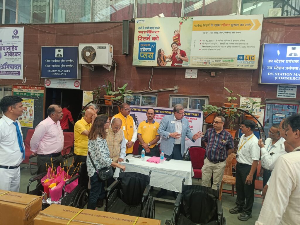 दि सेंट्रल रेल्वे तिकीट चेकिंग स्टाफ वेल्फेअर ट्रस्ट, मुंबई यांच्या वतीने समाजोपयोगी उपक्रम राबवित मध्य रेल्वेच्या महत्त्वाच्या स्थानकांवर व्हीलचेअरचे वाटप करण्यात आले.