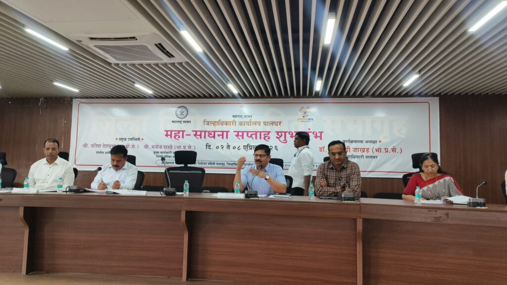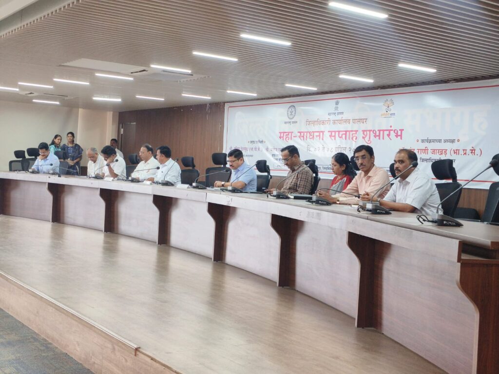 जिल्हाधिकारी डॉ. इंदुराणी जाखड यांच्या मार्गदर्शनाखाली जिल्हाधिकारी कार्यालयात ‘महा-साधना सप्ताहा’चा शुभारंभ करण्यात आला. या कार्यक्रमाचे अध्यक्षस्थान पालघर जिल्हा परिषदेचे मुख्य कार्यकारी अधिकारी मनोज रानडे यांनी भूषविले.