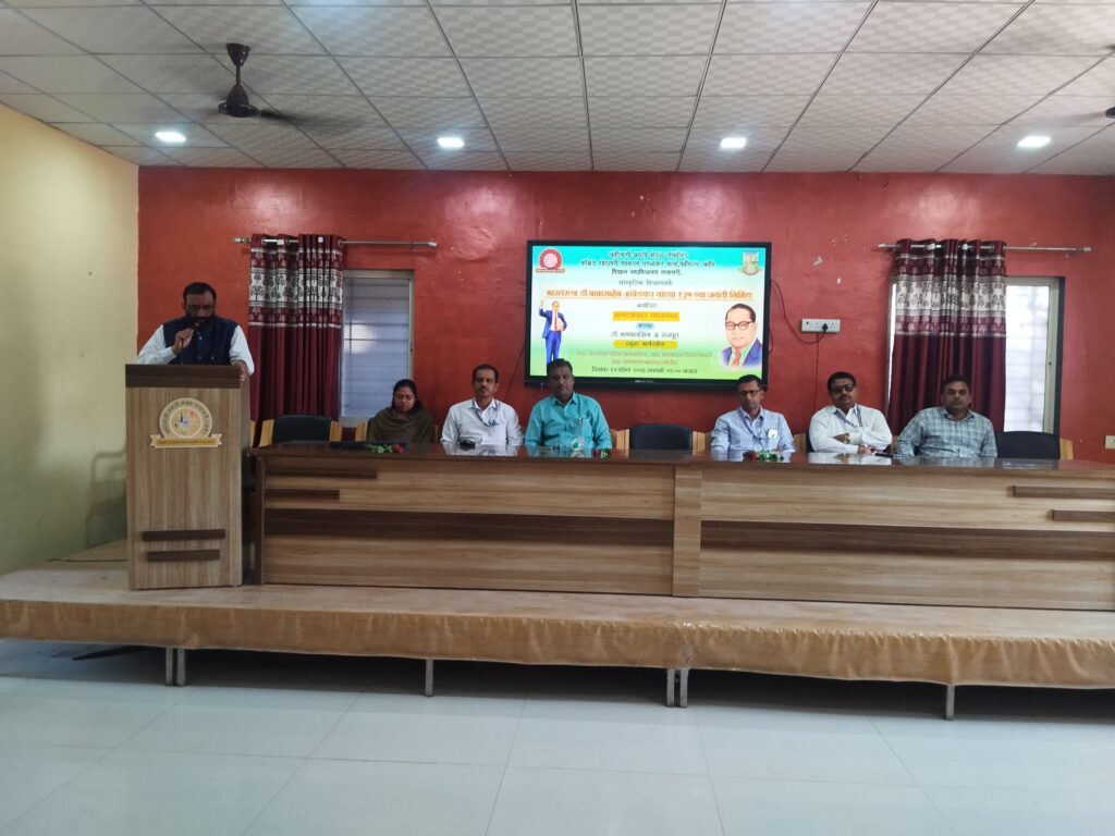 सर्वप्रथम वाणिज्य शाखेचे सहा.प्रा. महेश माळवदकर यांनी भारताच्या आधुनिकतेमध्ये डॉ.बाबासाहेब आंबेडकर यांचे अर्थतज्ज्ञ म्हणून त्यांच्या विविध कार्याचा आढावा मांडला. त्यात त्यांनी बाह्य अर्थलाभ, अंतर्गत अर्थलाभ,सुवर्ण चलन पद्धत, सुवर्णमान विनिमय, भारतीय चलनांचा विनिमय दर, हिंदू कोड बिलमुळे महिलांना पुरुषाबरोबरीचे अधिकार या बाबासाहेबांच्या कार्याच्या घटना व योगदानाचे वर्णन त्यांनी केले .अशा बरेच श्रमविभाजन ,जातीव्यवस्था आणि त्यामुळे होणाऱ्या समाजाच्या आर्थिक आजारांचे पैलू व ह्या विरोधात बाबासाहेबांनी केलेले कार्य व्यक्त केले आणि औद्योगिक पायाभरणी केलेल्या कार्याचे मार्गदर्शन देखील केले.