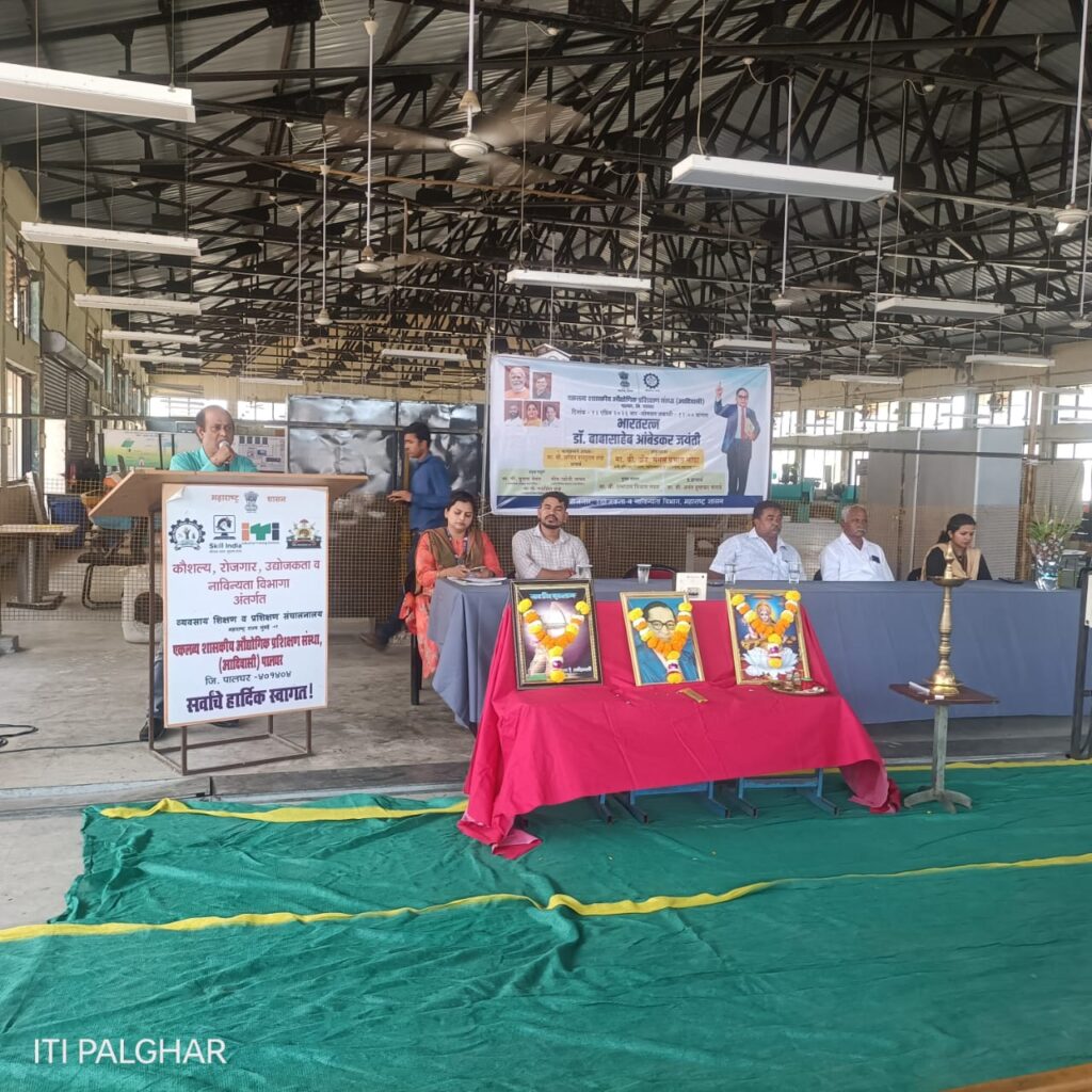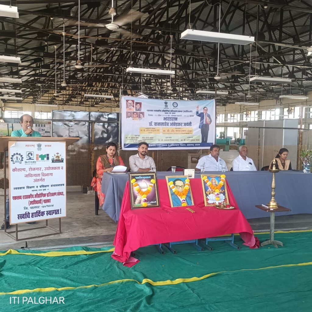 पालघर (प्रतिनिधी): भारतरत्न डॉ. बाबासाहेब आंबेडकर यांच्या जयंतीनिमित्त दिनांक १३ एप्रिल २०२६ रोजी एकलव्य शासकीय औद्योगिक प्रशिक्षण संस्था (आदिवासी), पालघर येथे भव्य कार्यक्रमाचे आयोजन करण्यात आले. कार्यक्रमाचे अध्यक्षस्थान संस्थेचे प्राचार्य श्री. सचिन परशुराम संखे यांनी भूषविले.