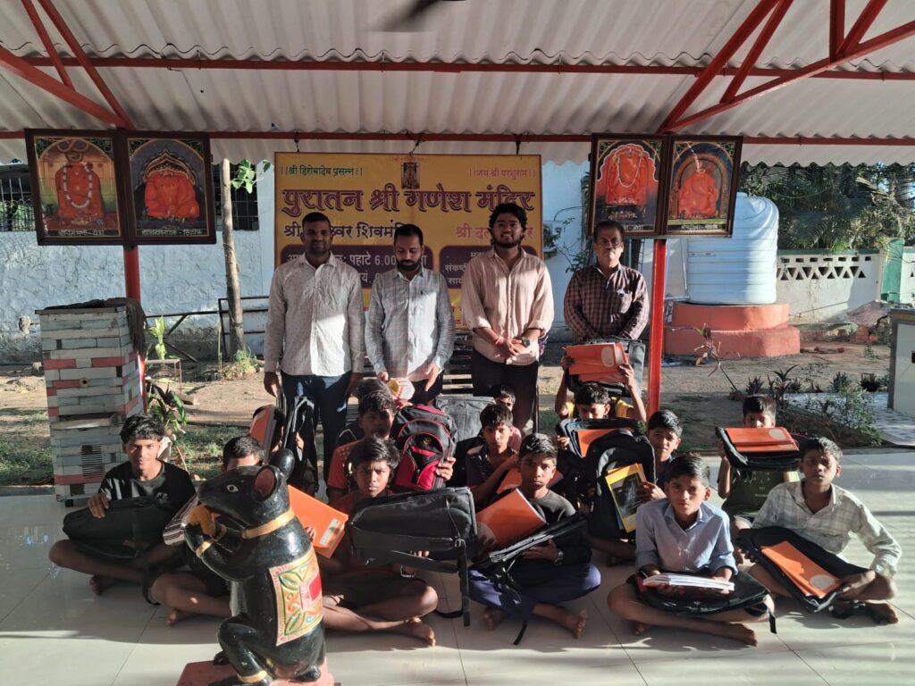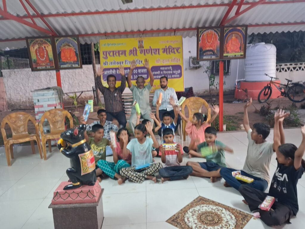 नव्या शैक्षणिक वर्षाचे साहित्य मिळाल्याने उपस्थित मुला-मुलींच्या चेहऱ्यावर मोठा आनंद पाहायला मिळाला. सर्व विद्यार्थ्यांनी सावे काकांचे आभार मानले. कार्यक्रमाची सांगता “गणपती बाप्पा मोरया” च्या जयघोषात करण्यात आली.
